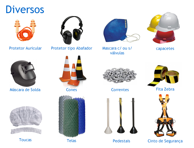 Confira ao lado alguns dos Equipamentos de Proteção Individual que trabalhamos.